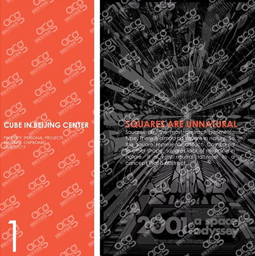 A:應該是第一個項目吧,The Cube in Beijing Center。我一直對古建筑和中國文化比較感興趣,很喜歡故宮,也很想表達出來我對它的一些感情和看法。這次有了這個機會。多虧了ACG的張老師給我提供了表一個表達形式,就是《2001 太空奧德賽》里面的那種方體。