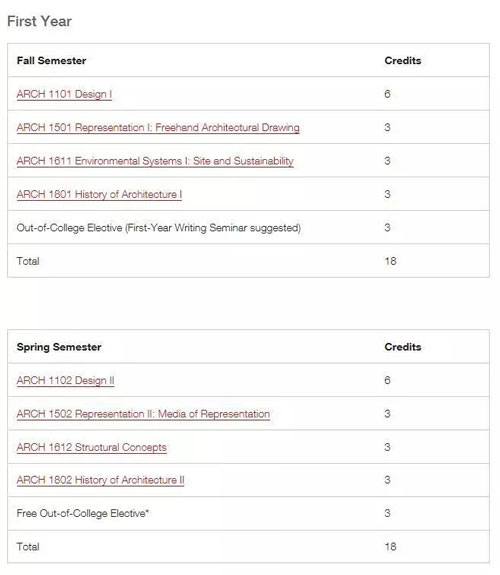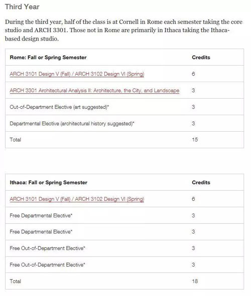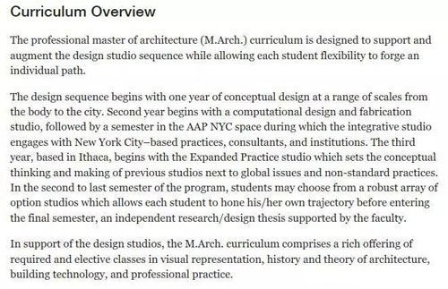 我先給大家看一下康奈爾大學建筑系的課程。我們可以從大學課程的設計上來看看學校的培養(yǎng)理念,先看一下這張官網(wǎng)截圖。