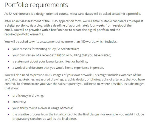 上圖是英國的曼徹斯特大學作品集的要求,也是針對申請本科建筑的。這個要求跟康奈爾的差別不太大。