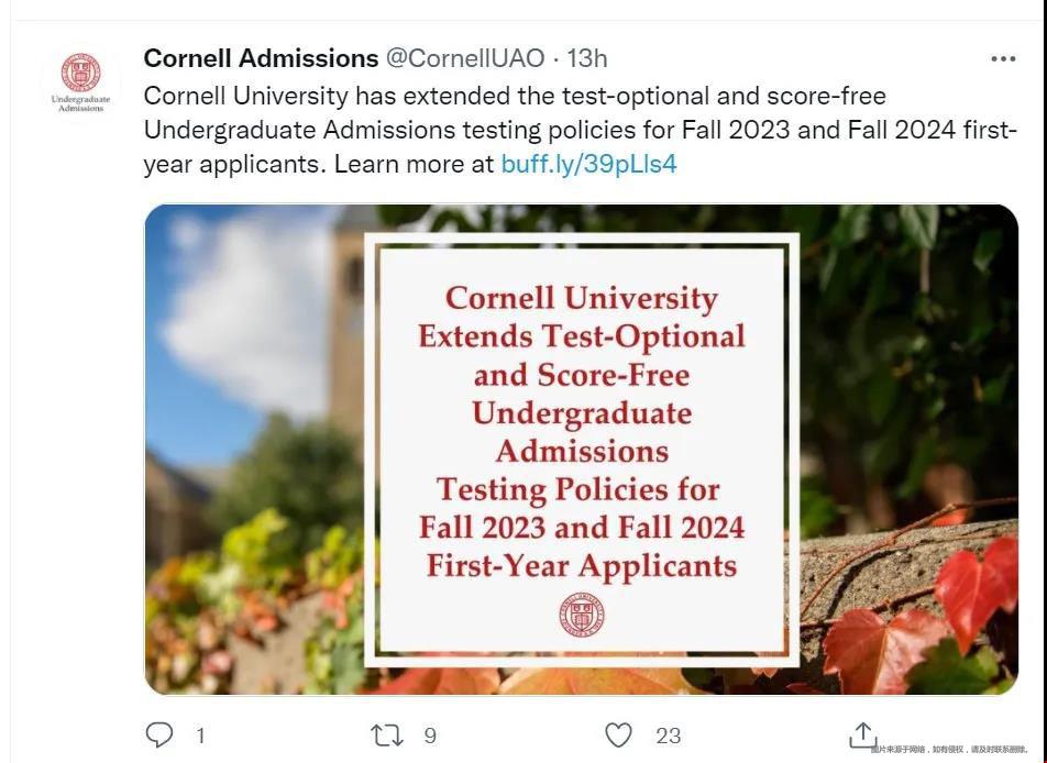 康奈爾大學SAT/ACT可選政策延期至2024Fall