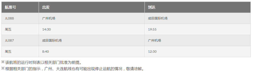JAL公司將從10月2日起開始恢復(fù)成田-廣州航線,飛行頻率為每周五一次往返,自9月24日起開始售票。