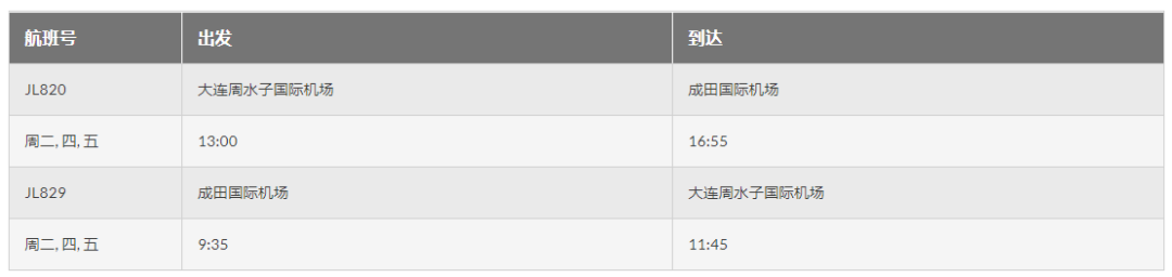 此外,JAL還增加了大連-東京往返航班班次,自本月18日起,JAL每周將提供3班飛往大連的航班。在現(xiàn)在每周兩班(每周二和周四)運(yùn)行的基礎(chǔ)上,增開每周五、大連往返東京的航班。