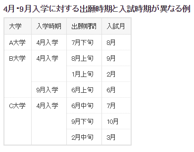 *第一次入試的時間普遍在6-10月;