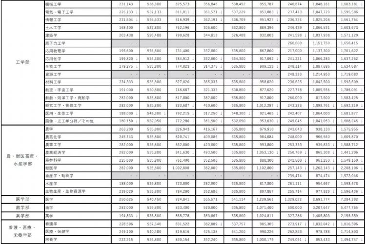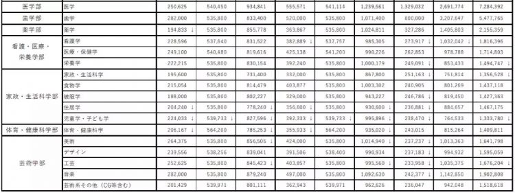 私立大學(xué)學(xué)部的平均學(xué)費(fèi)從高到低依次為「醫(yī)→齒→藥→看護(hù)·醫(yī)療.營(yíng)養(yǎng)→農(nóng)·獸醫(yī)畜產(chǎn)·水產(chǎn)→藝術(shù)→工·理→體育?家政→文系學(xué)部」。平均學(xué)費(fèi)較高的專(zhuān)業(yè)主要是因?yàn)閷?shí)驗(yàn)·實(shí)習(xí),需要用到專(zhuān)門(mén)的設(shè)備。