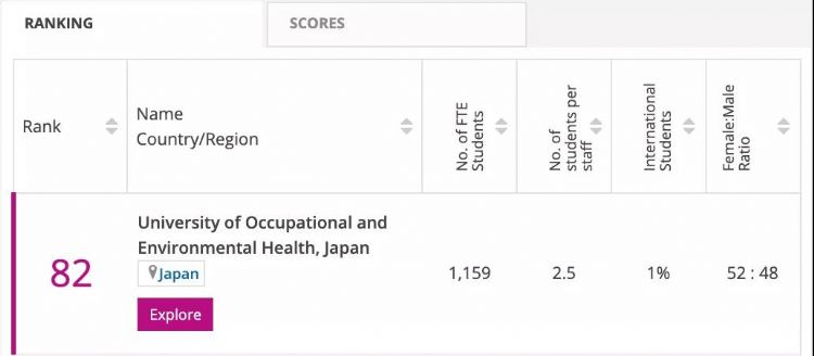 日本院校雖然在這份排名中表現(xiàn)一般,只有一所日本職業(yè)與環(huán)境衛(wèi)生大學(xué)進(jìn)入排名前百,排名第82。