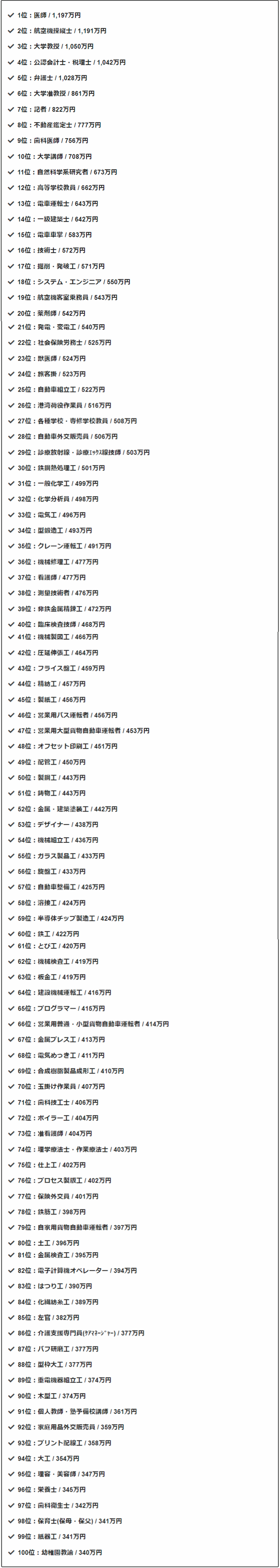這是在日本收入最多的100個職業(yè),相信不會日語也能看懂。