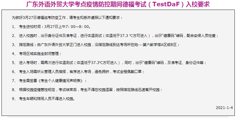 考生須從位于學城路的大連外國語大學東門考生入口處按照指定路線進入和離開校園。