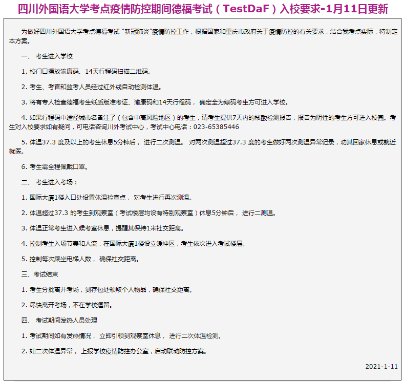 考生對入校要求如有疑問,可電話咨詢川外考試中心,考試中心電話: