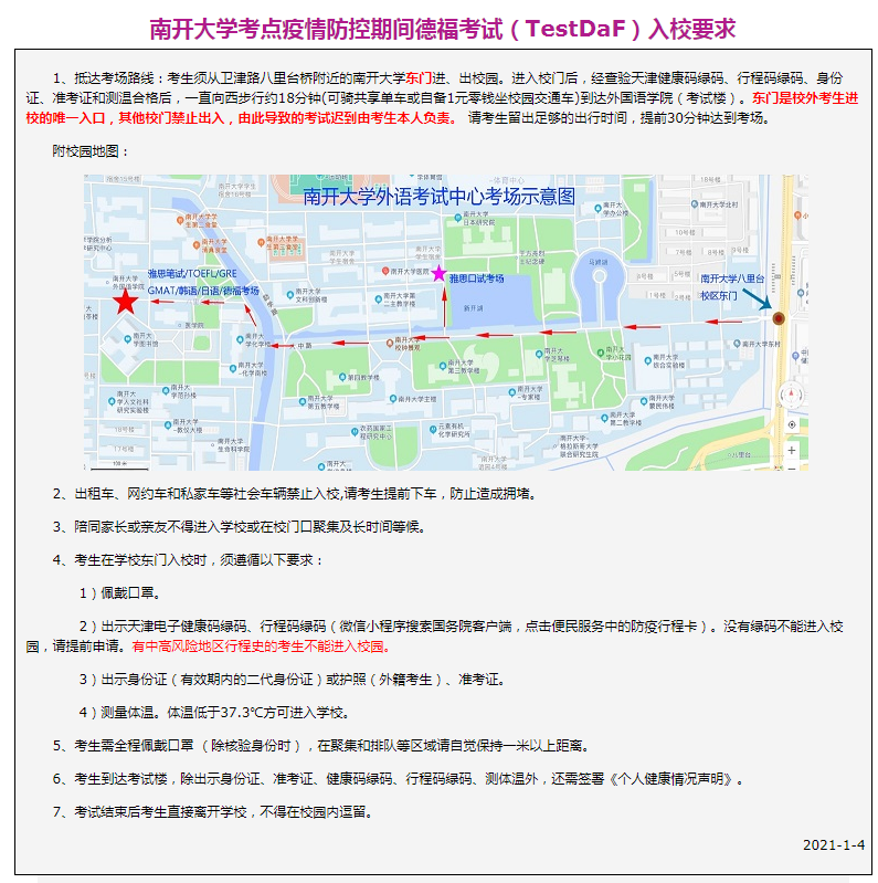 考生須從衛(wèi)津路八里臺橋附近的南開大學東門進、出校園,請?zhí)崆?0分鐘達到考場。