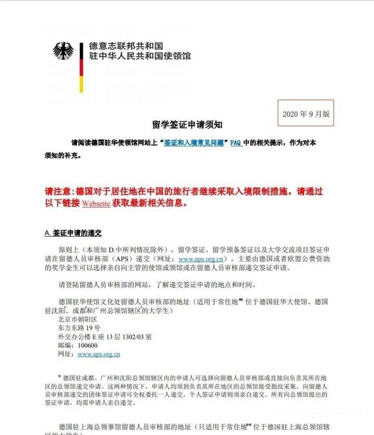 2020年9月,德國(guó)駐華大使館公布了最新的留學(xué)簽證材料清單,簽證材料基本和之前保持一致。