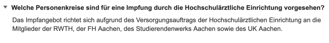 目前 RWTH、FH Aachen、Studierendenwerk Aachen 和 UK Aachen 的教職工和學(xué)生都可以在亞琛工業(yè)大學(xué)校內(nèi)的醫(yī)療機(jī)構(gòu)進(jìn)行疫苗接種。