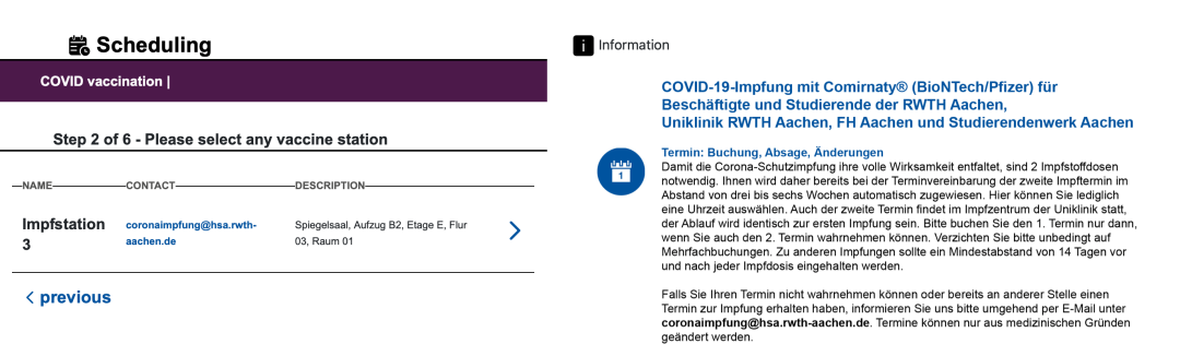 亞琛工業(yè)大學(xué)從 2021 年 6 月 8 日來,學(xué)校內(nèi)的醫(yī)療機(jī)構(gòu)一直在提供新冠疫苗接種,學(xué)生和員工能接種到的疫苗種類取決于每周學(xué)校接受的疫苗分配。
