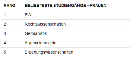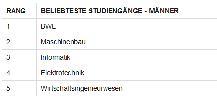 德國聯(lián)邦統(tǒng)計(jì)局每年都會(huì)根據(jù)數(shù)據(jù)列出男性和女性最喜歡的專業(yè)。
