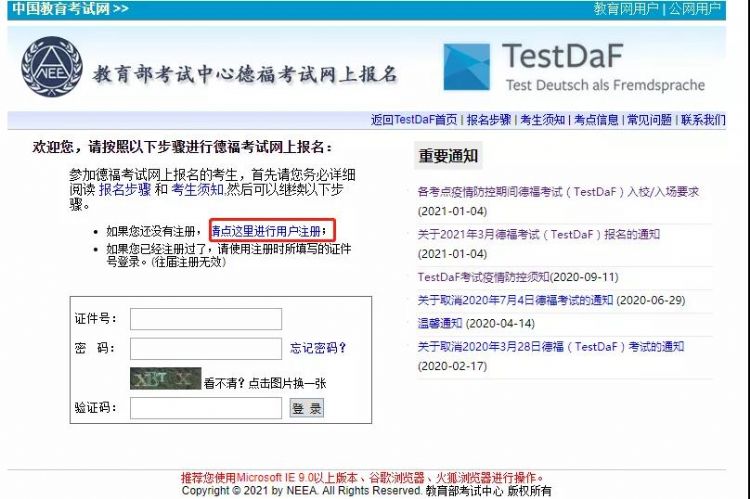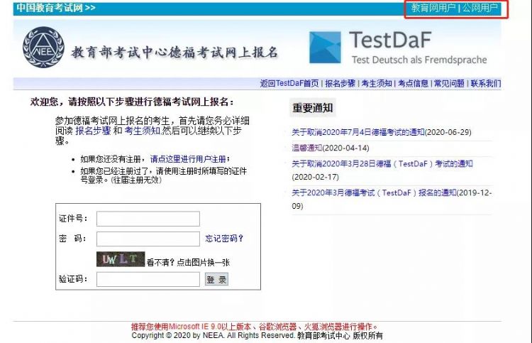 公網(wǎng):https://testdaf.neea.cn/