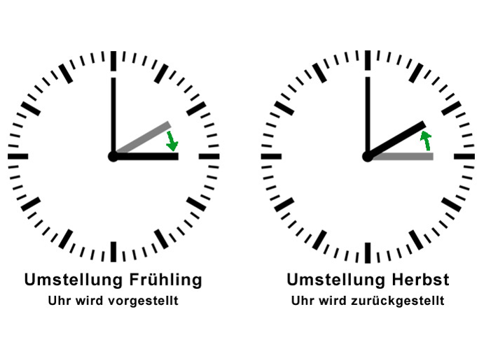 德國有“冬令時(Winterzeit)”和“夏令時(Sommerzeit)”之分,每年會進(jìn)行兩次時間上的調(diào)整。3月最后一個周日會將時間撥快一個小時(從凌晨2點(diǎn)撥至3點(diǎn)),開始夏令時,與中國的時差變?yōu)?小時。10月最后一個周日則會將時間撥慢一個小時(從凌晨3點(diǎn)撥至2點(diǎn)),開始冬令時,與中國的時差變?yōu)?小時。電子設(shè)備,例如手機(jī)、電腦等會自動調(diào)時間,而手表或者普通的鐘表則需要手動調(diào)整。如果3月或10月的某一天你發(fā)現(xiàn)自己的手表和手機(jī)的時間對不上了,想一想,可能今天就是調(diào)整冬令時或夏令時的日子哦~