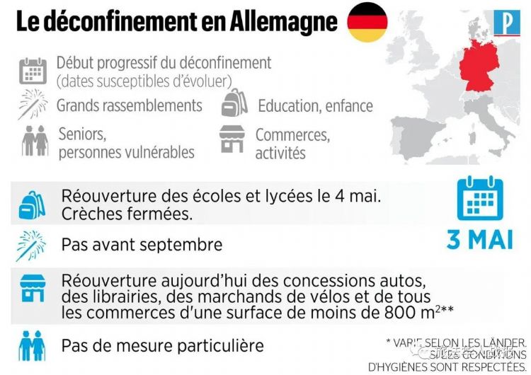 默克爾決定自4月15日開始逐步解除限制,4月20日開始,面積小于800平方米的商店逐步開放。作為德國“支柱產(chǎn)業(yè)”的汽車行業(yè),一些汽車經(jīng)銷商也在部分地區(qū)獲準(zhǔn)營業(yè)。5月4日開始,德國將逐步開放校園,理發(fā)店也將重新開業(yè),但仍要求保持社交距離,8月31日之前不得舉辦大型文化活動和體育賽事,餐館和旅館暫時關(guān)閉。另一方面,5月4日起可能放寬對養(yǎng)老機(jī)構(gòu)的探訪限制,以免老年人陷入孤立。