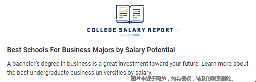 溫馨提示:許多美國本科商科專業(yè)畢業(yè)的學(xué)生確實(shí)會(huì)繼續(xù)獲得額外的學(xué)位,這通常會(huì)增加只有學(xué)士學(xué)位的畢業(yè)生的收入,尤其是當(dāng)學(xué)生就讀著名的商學(xué)院時(shí)。