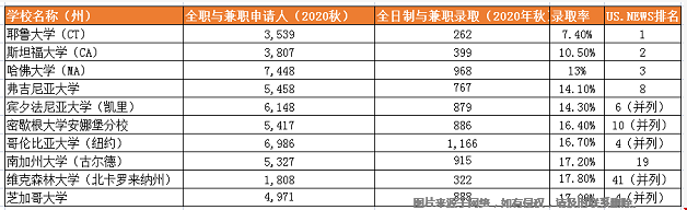 同時,在錄取率最低的10所美國大學法學院中有8所位于最近的US.NEWS排名前10名,其他排名靠后的就是南加州大學(第19位)和維克森林大學(并列第41位)進入榜單。