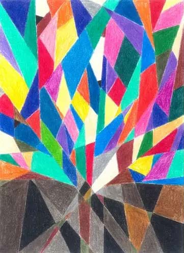 我想更深入地探討這個(gè)話題,希望能夠更加復(fù)雜地傳達(dá)這些單詞的含義,視覺效果也可以變得更豐富,所以我使用了抽象色塊。首先,我會(huì)想象一個(gè)詞,例如第一張照片中的“森林”。然后我會(huì)根據(jù)我對(duì)這個(gè)詞的解釋或第一印象來進(jìn)行素描。