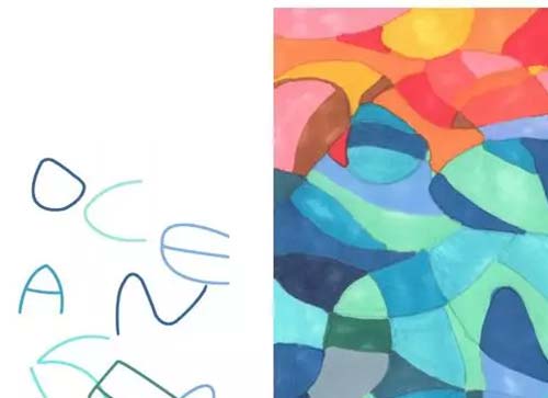 我意識(shí)到,從這些抽象的、豐富多彩的色塊,我可以發(fā)現(xiàn)字母的形狀,它們的顏色與他們最近的顏色塊相同。通過這種方法,我可以更好地表達(dá)三個(gè)詞的意思,以及它們給我的印象。